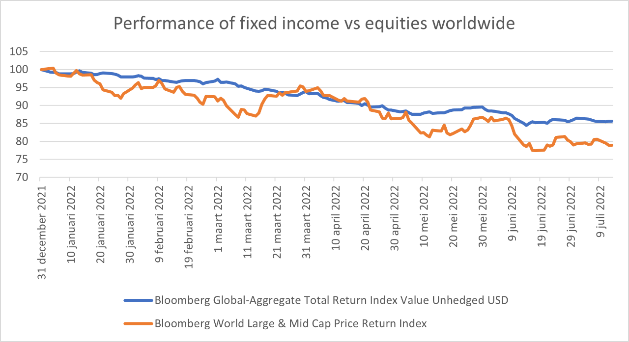 Sur le marché obligataire, les bons du Trésor américain à 10 ans sont passés de 3,48% à la mi-juin à 2,81% début juillet. Cela représente une chute de près de 70 points de base. Même mouvement pour le Bund allemand à 10 ans, passant de 1,76% à 1,16% au cours de la même période. Le taux break-even d’inflation aux États-Unis, a également chuté de manière significative de près de 50 points de base depuis la mi-juin. La baisse du rendement obligataire sur le marché suggère un environnement désinflationniste. Cela explique, entre autres raisons, pourquoi les actifs risqués ont commencé à se stabiliser récemment.