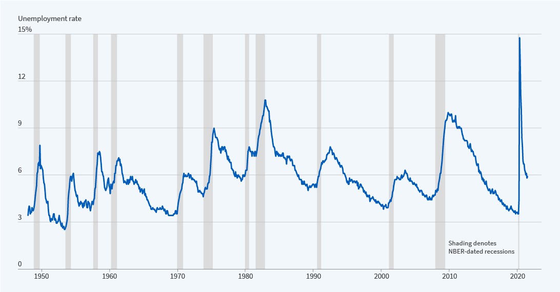 Vient ensuite la phase d’expansion : il y a toujours un déficit d’offre de biens, le chômage baisse car on observe des opportunités de gagner de l’argent en contribuant à l’économie. Du fait que l’argent va être dépensé, les taux vont commencer à monter, souvent au niveau des taux courts d’abord. C’est généralement le moment où les banques centrales vont réduire les mesures de stimulation. Une évolution positive du chômage a historiquement toujours été un bon moment pour acheter des actions.