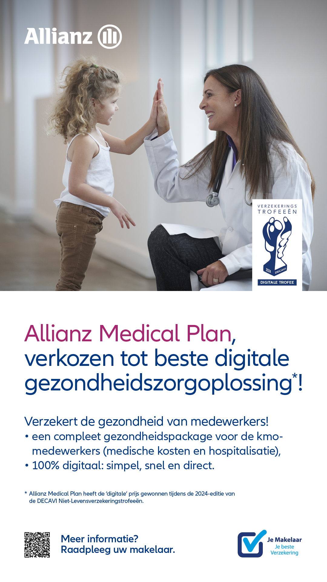 Ons product Allianz Medical Plan was een van de genomineerde verzekeringsproducten voor de DECAVI Niet-Levensverzekeringstrofee in de categorie 'Digitalisatie'.