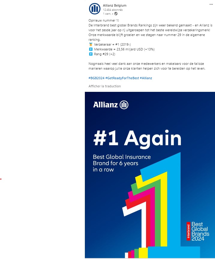 De Interbrand Best Global Brands rankings zijn weer bekend gemaakt - en Allianz is voor het zesde jaar op rij uitgeroepen tot het beste wereldwijze verzekeringsmerk!