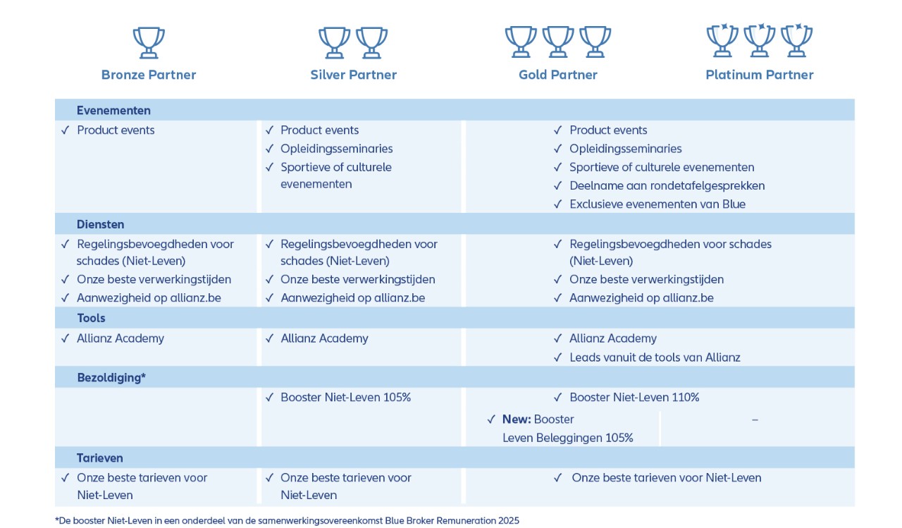 Uw Allianz-voordelenprogramma voor 2027 is vergelijkbaar met het programma dat we u hebben voorgesteld voor 2026. Ook dit jaar willen we de nadruk leggen op het gebruik van onze digitale tools en in het bijzonder de gebruikers van MyAllianz Portfolio Overview en de tool voor gebruikersbeheer belonen.