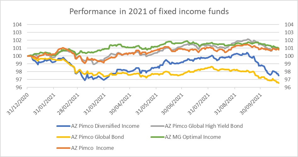 De algemene stijging van de rentevoeten, die de afgelopen twee maanden is waargenomen, ook al is die vrij gering, is nadelig voor fondsen die in obligaties zijn belegd en die moeite hebben om in 2021 een positief rendement te behalen.
